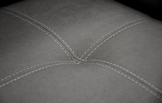 Sedací sestava má čalouněná záda. Stojí na chromovaných nožkách