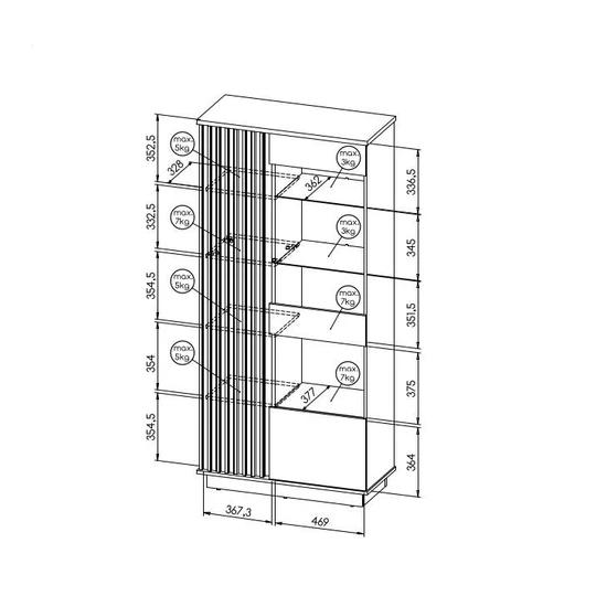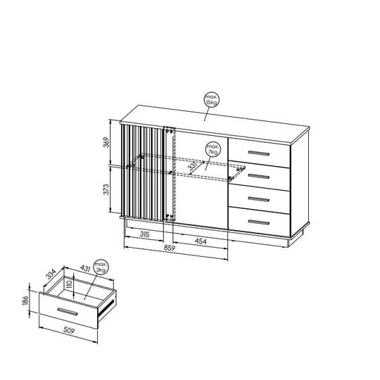 Nábytek z tohoto programu byl navržen tak, aby byl praktický, elegantní a jeho úložné prostory dobře posloužily. Skvělým designovým prvkem je použití vertikálního designu lamel.