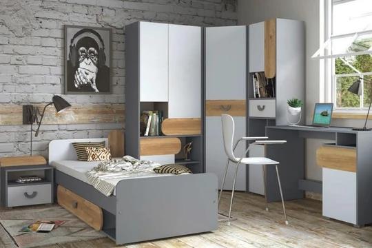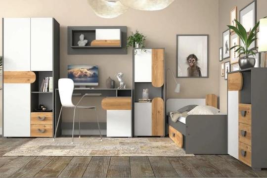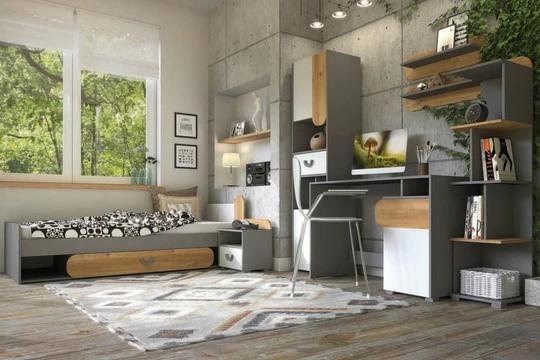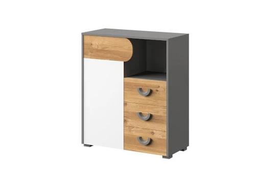 Komoda 6 je součástí moderní studentské sestavy MONREALE, která je navržená tak, aby odpovídala nárokům jak začínajících puberťáků, tak uspokojila potřeby studentského pokoje.