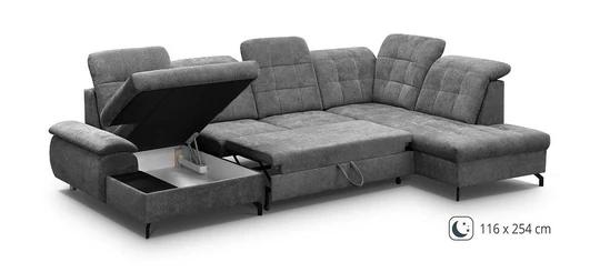 Sedačka disponuje rozkladem o velikosti 116x254 cm a nespornou výhodou je i úložný prostor. Systém rozkládání je typu DELFÍN - matrace je vysune ze spodní části sedačky za úchytku. Po vysunutí se zvedá tažením do výše sedací části. Výhodou jsou polohovatelné opěrky hlavy. Díky opěrkám můžete přizpůsobit komfort sezení Vašim potřebám.