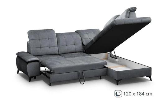 Sedačka disponuje rozkladem o velikosti 120x184 cm a nespornou výhodou je i úložný prostor. Systém rozkládání je typu DELFÍN - matrace je vysune ze spodní části sedačky za úchytku. Po vysunutí se zvedá tažením do výše sedací části. Výhodou jsou polohovatelné opěrky hlavy. Díky opěrkám můžete přizpůsobit komfort sezení Vašim potřebám.