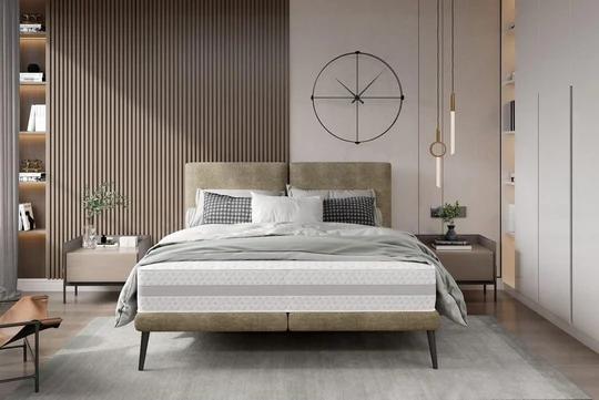 Čalouněna postel KAHLA 160x200 zaujme na první pohled svým minimalistickým designem a vysokým čelem.