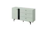 Díky štíhlým vysokým nohám působí komoda lehce a moderně. Vnitřek komody disponuje prostornými a hlubokými policemi. Na výběr máte ze dvou dekoru a to GRANAT a ŠALVĚJ.