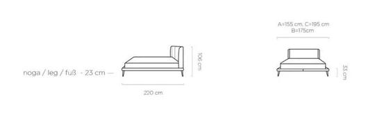 Čalouněna postel VINCE 180x200 zaujme na první pohled svým minimalistickým designem a vysokým čelem.