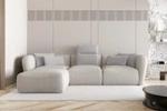 Zadní strana je čalouněná, takže ji s klidem můžete umístit do středu i rohu místnosti. Sedačka nabízí možnost měnit druh a barvu látky dle svých preferencí. Na výběr je i strana rohové části.