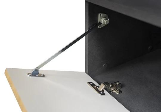 Ozdobné lamely na předních dvířkách dodávají nábytku velkolepý efekt. Okraje jsou chráněny odolným melaminem.