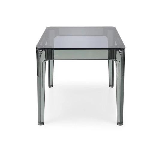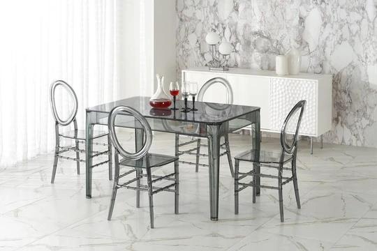 Materiály použité u stolu Gomez jsou velmi módní a elegantní a dodají vašemu interiéru jedinečný styl. Kouřové sklo se také snadno udržuje v čistotě a polypropylen je odolný vůči UV záření, díky čemuž si stůl zachová svou krásu a barvu po mnoho let.