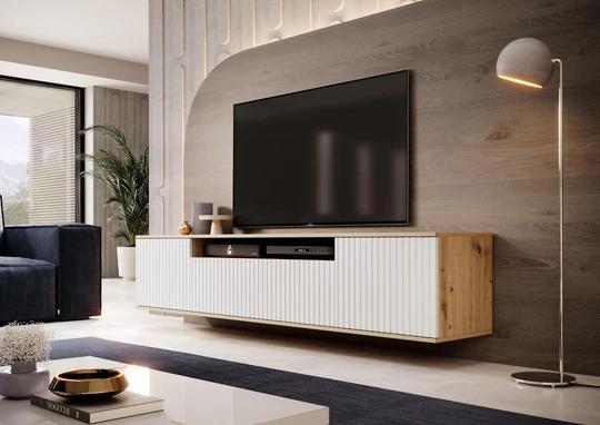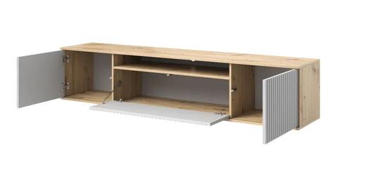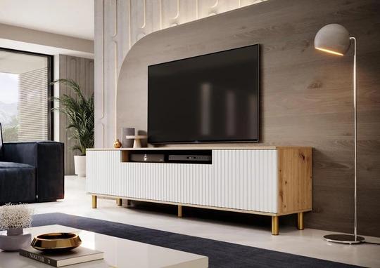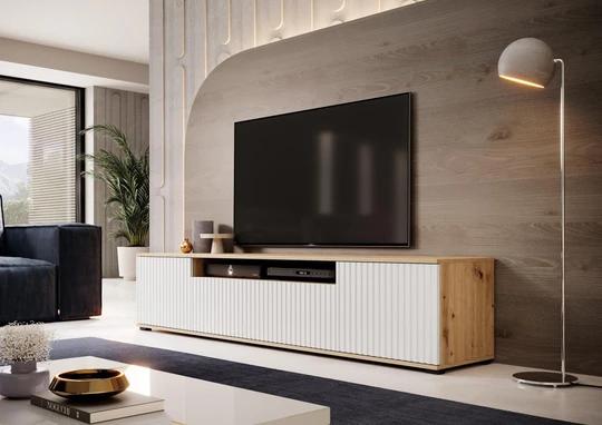 Moderní TV komoda pod televizi s frézovanými dvířky.