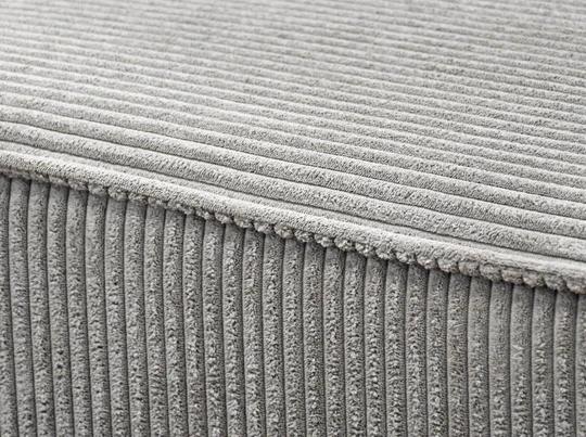 Sedačka je čalouněná v látce Poso - velurová látka s krátkým vlasem připomínající manšetr. Poso je na povrchu sametově jemná, měkká a prodyšná. V testu odolnosti Martindale dosahuje 35 000 cyklů, takže se řadí mezi zlatý střed. Vyrobená je ze 100% polyesteru a má vysokou gramáž 380 g/m². Udržuje se vhlčeným hadříkem a prostředky na čalouněný nábytek, případně mýdlovou vodou.