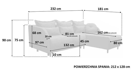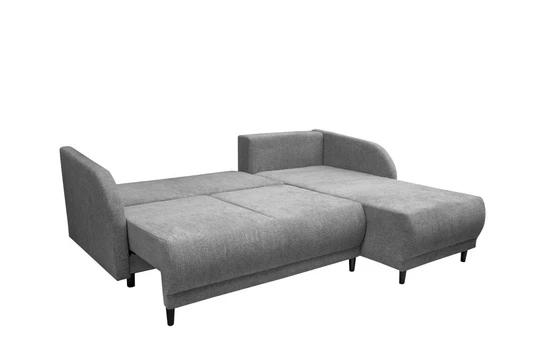Tato krásná rohová sedačka je s úložným prostorem a rozkládací funkcí. Rozklad je pomocí systému DL, který spočívá v mírném posunutí sedačky k sobě a sklopení zádové opěrky.