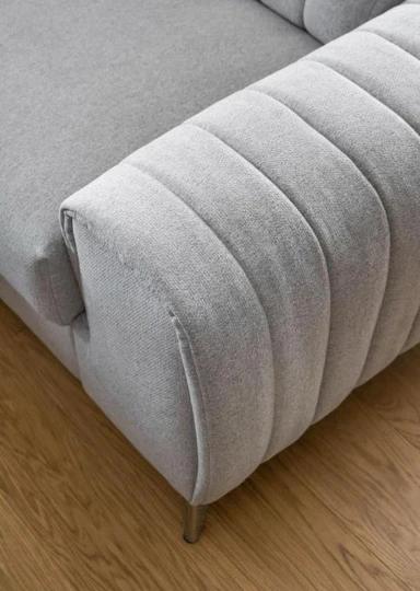 Zadní stranu má sedačka Louis čalouněnou, a proto je vhodná k umístění i do prostoru. Nožky jsou v chromovém provedení.