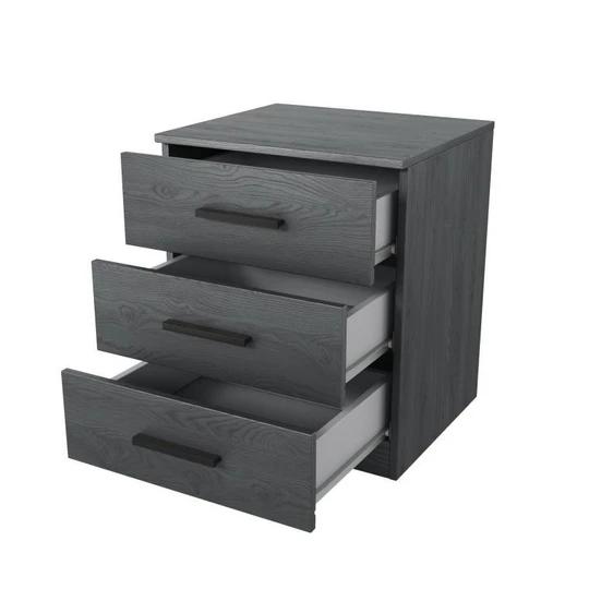Stolek je tvořený třemi šuplíky. Je vyrobený z kvalitního lamina, které je velmi odolné vůči mechanickému poškození (př. poškrábání) a nepodléhá vlhkosti či slunečnímu záření.