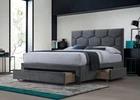 Elegantní manželská postel 160x200 cm Harriet v neutrálním šedém čalounění.