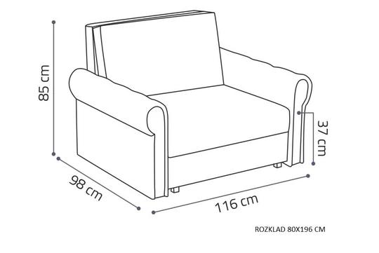 Křeslo disponuje úložným prostorem a je rozkládací, což může být nenahraditelná role v menších prostorech.