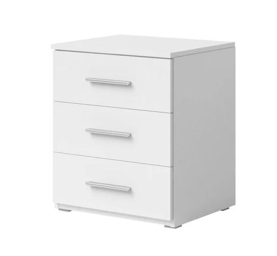 Komoda má dvoje dvířka a 4 šuplíky. Klasický noční stolek disponuje 3 zásuvkami.
