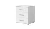 Prostorný moderní noční stolek k posteli se zásuvkami v bílé barvě.