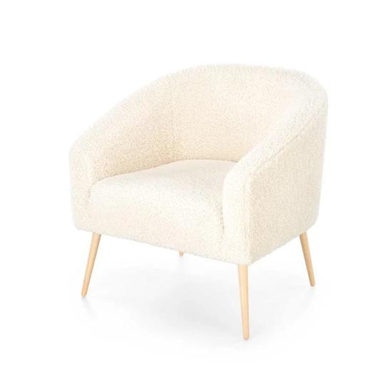 Konstrukce je tvořená masivním dřevem s přírodními nožkami, čalounění je v tzv. boucle látce - textílie s povrchem ztvárněným smyčkami, uzlíky, očky nebo nopkami.