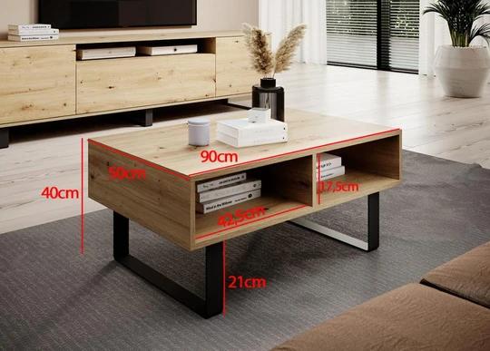 Stabilitu zajišťují kovové nožičky vysoké 21 cm – nejenže dodávají lehkost designu, ale zároveň umožňují snadný úklid pod stolkem, třeba i robotickým vysavačem. Pokud toužíte po sladěném interiéru, lze stolek zkombinovat s komodou nebo TV stolkem ze stejné série.