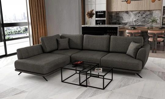 Čalouněná rohová sedací souprava KASIA je ideální pro příznivce moderny spojené s funkčností. Skvěle se hodí do moderních a minimalistických interiérů.