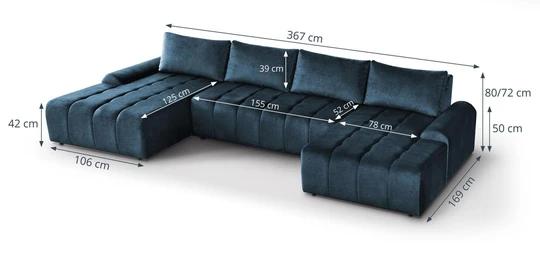Její konstrukce je tvořená kombinací masivního dřeva a dřevotřísky. Rozkládací sedačka je vyplněná kvalitní PUR pěnou T30/35, která se řadí mezi středně měkké pěny se zvýšenou pružností a pružinami typu faliste.