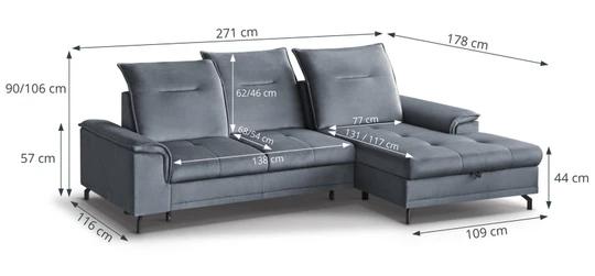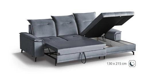 V rohové části - lenošce má úložný prostor a je rozkládací. Systém rozkládání je typu Delfín - matrace je vysune ze spodní části sedačky za úchytku. Po vysunutí se zvedá tažením do výše sedací části. Zadní stranu má čalouněnou, a nejen díky tomu se bude vyjímat ve středu i v rohu místnosti.