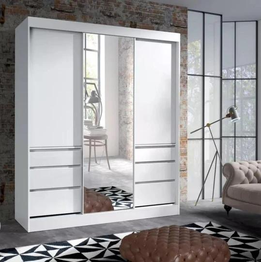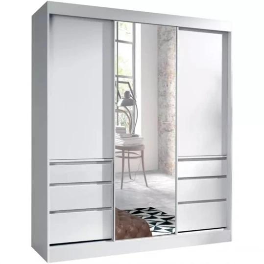 Šatní skříň se zrcadlem HEIDI vyřeší nejen vaše problémy s nedostatkem místa, ale dodá vaší ložnici elegantní nádech. Je navíc vyrobená z kvalitního lamina, které je velmi snadné na údržbu, odolné vůči poškrábání, oděrům a zachovává si svou strukturu po dlouhou dobu. Hrany jsou zakončeny ABS lištou, která chrání skříň proti možnému poškození.