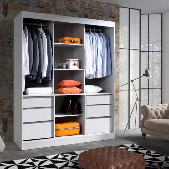 Velká a prostorná šatní skříň v bílém elegantním dekoru HEIDI.
