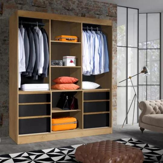 Velká a prostorná šatní skříň HEIDI v elegantním dekoru Dub lefkas a černá.