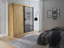 Velká a prostorná šatní skříň se zrcadlem v dubově-černém elegantním dekoru SOLNA II.