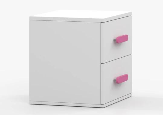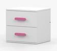 Noční stolek do dětského pokoje - skladem v bílém dekoru i šedém dekoru s volitelnou barvou úchytek - červené, modré, zelené, růžové, fialové, bílé, šedé, dub sonoma.