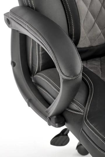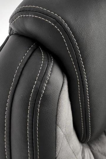 Materiál kombinuje látku a eko kůži, což zaručuje dlouhou životnost a komfortní pocit při sezení. Jedinečná kombinace barvy černá - šedá přidává elegantní a moderní vzhled, který se skvěle hodí do každé kanceláře.