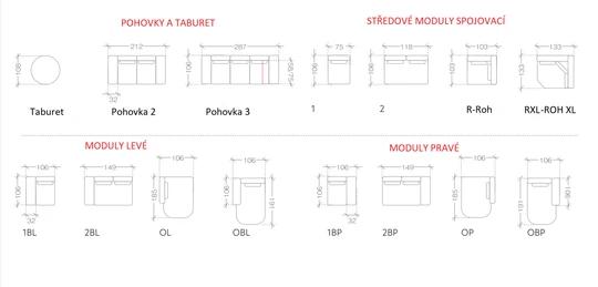 ARES U modulární sedací souprava, OBL + 2 + RXL + 1BP