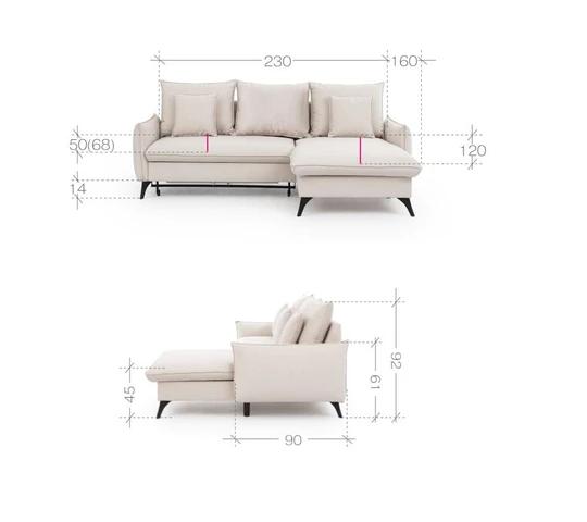 Rohová sedačka Modica je rozkládací (typ rozkladu delfín) a má úložný prostor.