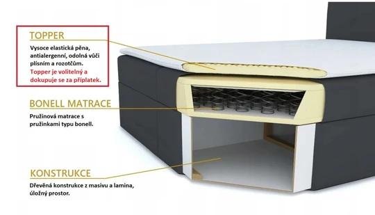 Součástí postele není vrchní matrace (topper) ovšem nabízíme možnost dokoupení.