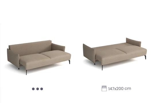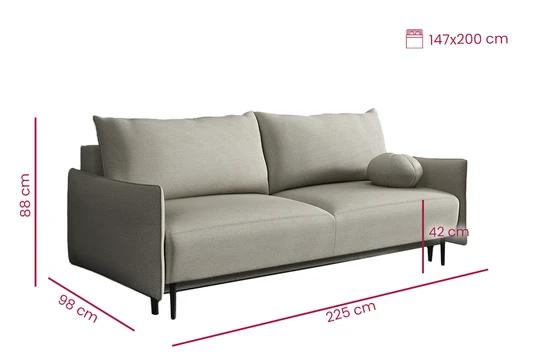 Pohovka je vybavena rozkládací funkcí, která umožňuje snadnou přeměnu na pohodlné lůžko pro hosty během několika sekund. Praktický úložný prostor pod sedákem je ideální pro ukládání ložního prádla, polštářů nebo jiných potřebných věcí. Elegantní nožky s výškou 16 cm dodávají pohovce lehkost a moderní vzhled, zároveň usnadňují úklid pod ní. Kvalitní výplň z pěny 30/38 a pružiny faliste zajišťují vysoký komfort při sezení i ležení a dlouhou životnost pohovky.