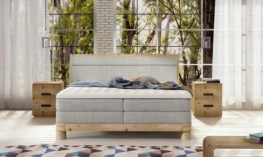 Luxusní kontinentální postel (boxspring) z masivního dubového dřeva.