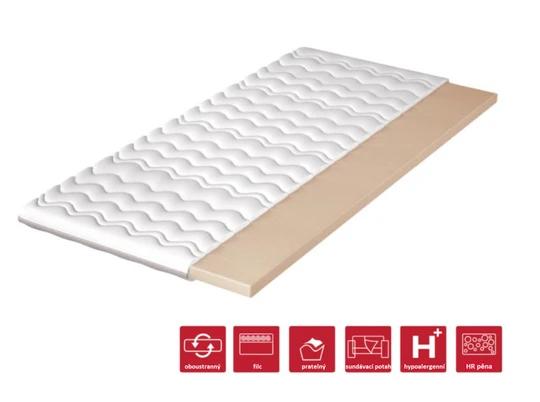 Výplň tohoto dvoustranného topperu tvoří kvalitní HR pěna, která se vyznačuje pružností a přizpůsobivostí se lidskému tělu. Díky otevřenější struktuře má HR pěna dobrou prodyšnost, tedy snáze vyrovnává teplotní rozdíly. Výplně ze studené pěny se vyrábí bez chlóroflórokarbónátů a tím šetří životní prostředí. Výška matrace je 5 cm.
