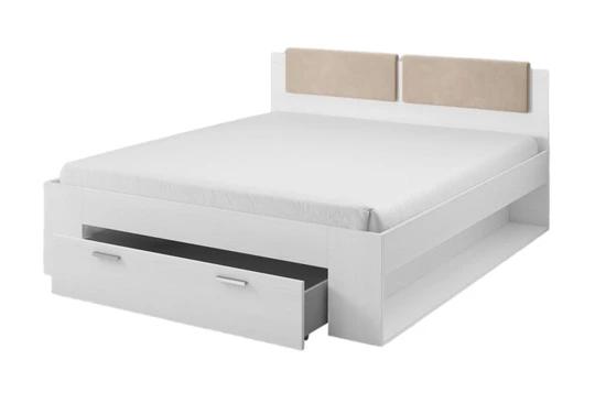Postel na první pohled zaujme svými čalouněnými opěrkami hlavy. Díky ním můžete pohodlně sedět, sledovat televizi, pracovat na notebooku nebo číst knihy. Nechybí zde ani praktický úložný prostor v podobě vysouvacího šuplíku, do kterého hravě schováte lůžkoviny či jiné věci. Postel je bez roštu.