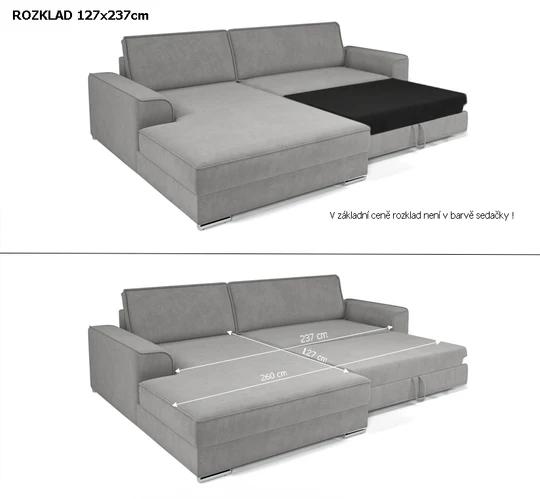 Sedací souprava je samozřejmě rozkládací. Zadní stranu však nemá čalouněnou, takže se nehodí k umístění do prostoru. Zadní strana je v technické látce.