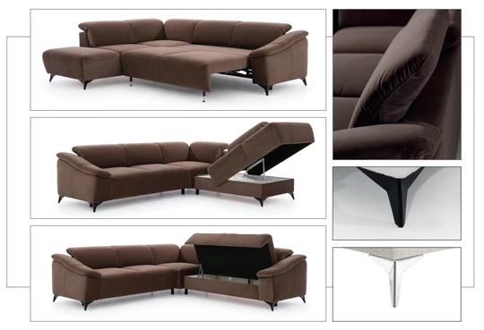 Je vybavená kvalitními zvedacími mechanismy v úložném prostoru, díky kterým je způsob otvírání a zavírání bezpečný a v plné podpoře. Funkce spaní navíc zajistí pohodlný odpočinek jak vám, tak vašim blízkým a bude příjemným zážitkem během každého okamžiku stráveného v pohodlí vašeho domova. Systém rozkládání je typu "PUMA" - jemné nadzvednutí sedadla nahoru a následné spustění tahem dopředu. Matrace bude srovnána v jedné linii se zbytkem sedací plochy soupravy.