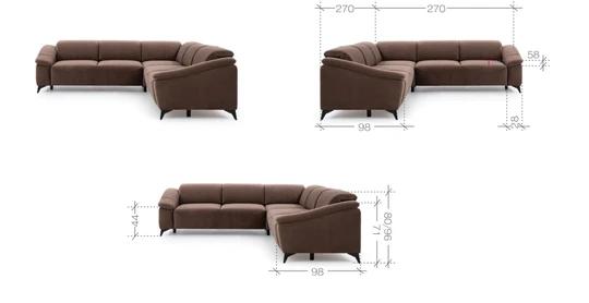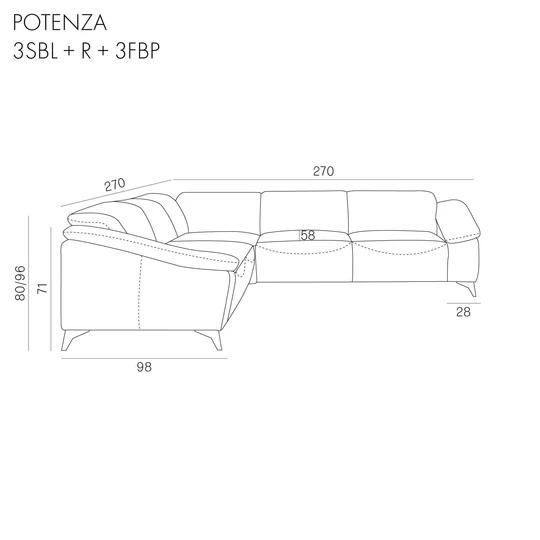 Díly sedací soupravy Potenza L: 3SBL + R + 3FBP levá / 3FBL + R + 3SBP pravá