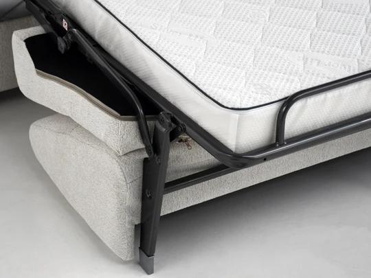 Pohovka navíc nabízí úložný prostor na ložní prádlo, pevné sedací popruhy pro větší pohodlí, čalouněná záda vhodná i pro volné umístění v prostoru a moderní, nadčasový vzhled, který se hodí do každého interiéru.