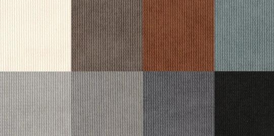 Jedná se o vysoce kvalitní potahovou látku, která spojuje jedinečný design s funkčností. Její charakteristická žebrovaná struktura o šířce cca 3 mm připomíná manšestr, přitom se vyznačuje měkkým, sametovým povrchem příjemným na dotek. Materiál je vyroben z kombinace 94 % polyesteru a 6 % nylonu, což zajišťuje jeho trvanlivost, odolnost při intenzivním používání a snadnou každodenní údržbu. Látka RUN AGAIN splňuje přísné kvalitativní normy potvrzené certifikátem Oeko-Tex Standard 100 a normou REACH, díky čemuž je bezpečnou volbou jak pro domácí, tak komerční použití.