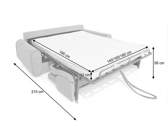 Pohovka 160: 214 × 100 × 105 cm, spací plocha 160 × 195 cm