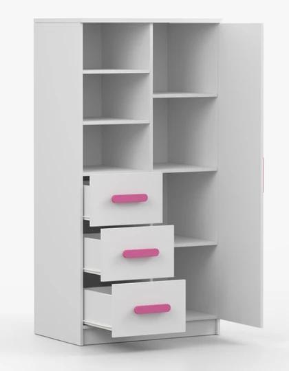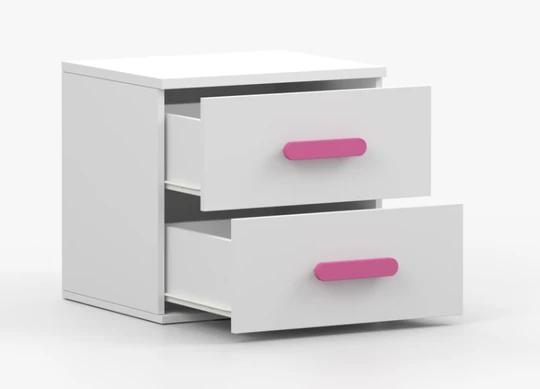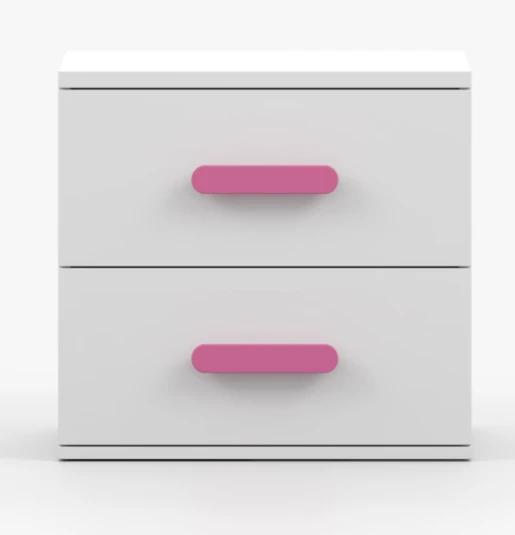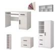 Jedná se o nové, originálně zabalené kusy nábytku v posledních kusech skladem. Dekor skříněk je bílý a barva úchytek volitelná. Další nábytek z kolekce MIKI lze doobjednat.