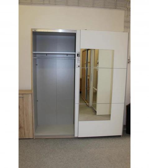 Velkou šatní skříň s posuvnými dveřmi ocení všechny poctivě nakupující ženy. Díky množství úložného prostoru pojme všechno vaše oblečení od triček až po kabáty. V jedné části skříně Axel 5 se nachází police a šatní tyč. V další zase několik polic pro uspořádání vašich věcí. Axel 5 je vyrobená z kvalitního lamina, díky kterému je odolná vůči poškrábání, oděrům, blednutí a krátkodobému působení vody. Vybírat můžete z několika dekorů a velikostí.