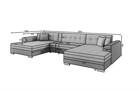Sedací souprava Atena zaručuje nejvyšší míru relaxace a pohodlí, a to především díky vhodnému tvaru opěradel a výplni sedáků pěnou T30 a pružinami faliste odolnými proti deformaci. Další výhodou sedací soupravy ve tvaru U je možnost rozkladul o rozměru 300 x 129 cm.